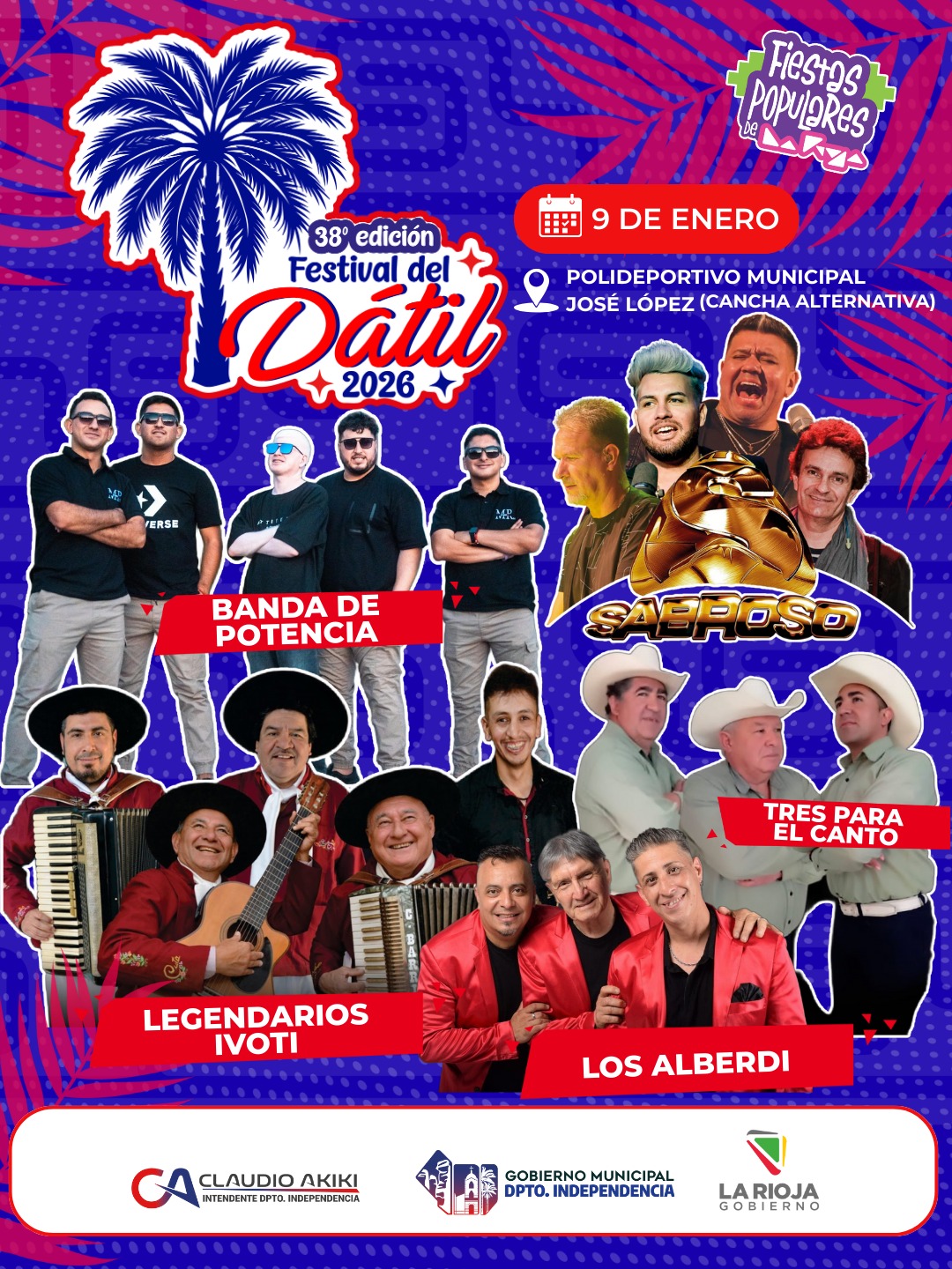 Posteriormente, el viernes 9 de enero, el Departamento Independencia se vestirá de gala para una de sus citas más representativas: el Festival Provincial del Dátil. Esta festividad no solo rinde homenaje a la producción regional, sino que también se consolida como un punto de encuentro ineludible para el cancionero riojano.