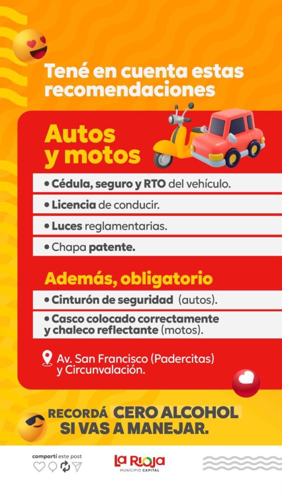 La presencia de los equipos municipales en las rutas y accesos busca no solo el cumplimiento de la ley, sino también el cuidado preventivo de los vecinos y turistas. Se recomienda designar a un conductor que no consuma alcohol y verificar el estado mecánico de los rodados antes de emprender el viaje hacia Sanagasta.