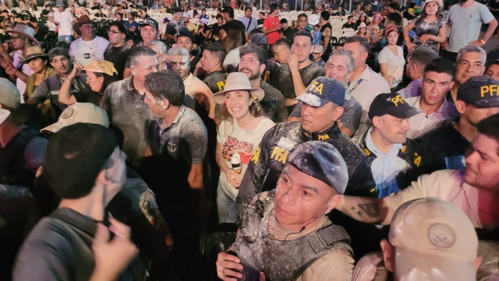 La llegada de la mandataria nacional se produjo en un clima de opiniones divididas, entre la expectativa institucional por su presencia y las críticas manifestadas por sectores de la cultura local. Pese a la brevedad de su estancia en el festival, su visita a la provincia incluyó actividades previas tanto en la Capital como en departamentos del interior, donde mantuvo encuentros con referentes políticos y sociales del arco opositor y productivo.