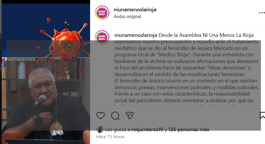 Desde la Asamblea Ni Una Menos La Rioja emitieron un comunicado para expresar su profunda preocupación y repudio ante el tratamiento mediático que se dio al femicidio de Jessica Mercado en un programa local de Medios Rioja, conducido por el periodista José Luis Luna. Según la organización feminista, durante una entrevista con familiares de la víctima, se realizaron afirmaciones que desviaron el foco del problema hacia las supuestas «falsas denuncias» y desacreditaron el sentido de las movilizaciones feministas, un tema central en tu agenda de género y derechos humanos, sin mezclar otros contextos.