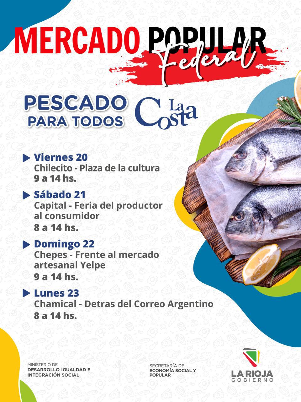 El programa recorrerá este fin de semana la Capital, Chepes y Chamical, acercando pescado fresco y económico en el marco del Mercado Popular Federal y de cara a Semana Santa.