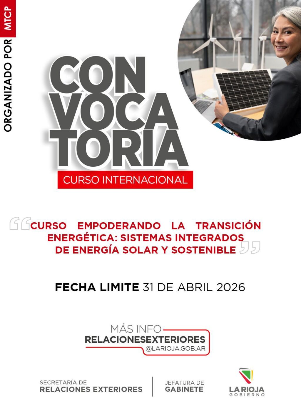 Para obtener más información, las personas interesadas pueden comunicarse a través del correo electrónico relacionesexteriores@larioja.gob.ar