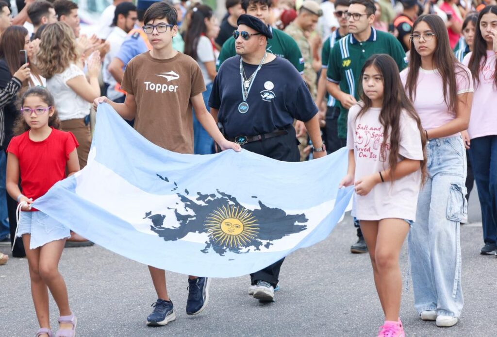 El acto concluyó con el paso de las delegaciones escolares, fuerzas de seguridad y el siempre emotivo desfile de los veteranos de guerra, quienes recibieron el respeto y el reconocimiento permanente de toda la comunidad riojana presente.