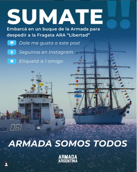 El sorteo se realiza a través de las plataformas digitales oficiales de la fuerza. Los interesados deben ser mayores de edad (o contar con autorización), seguir la cuenta de Instagram @Armadaargentinaof, dar «Me gusta» a la publicación del sorteo y etiquetar a un acompañante (quien también debe ser seguidor de la cuenta).