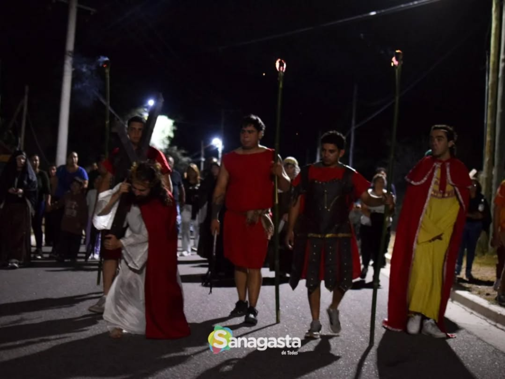 El Intendente Luis Flores, acompañado por miembros de su gabinete municipal, participó activamente del recorrido, integrándose a la comunidad en este acto que combina el arte escénico con el sentimiento religioso. La actividad se consolidó como uno de los momentos más significativos de la agenda de Semana Santa a nivel local.