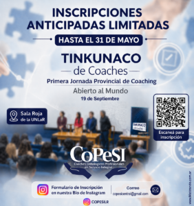 La comunidad de coaching de la provincia de La Rioja se encamina a un hecho significativo con el lanzamiento oficial de las inscripciones anticipadas para el “Tinkunaco de Coaches”, la Primera Jornada Provincial de Coaching que se desarrollará el próximo 19 de septiembre en la Sala Roja de la UNLaR.